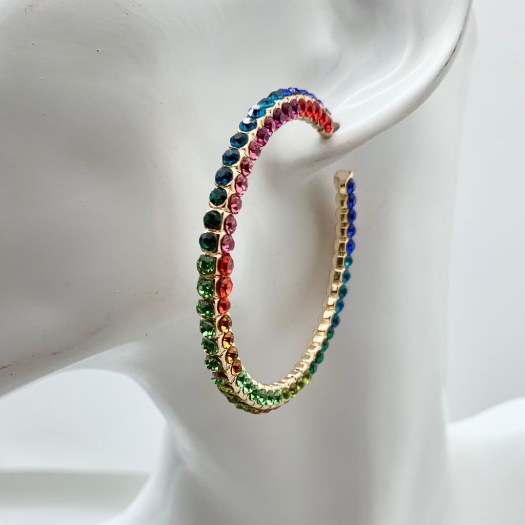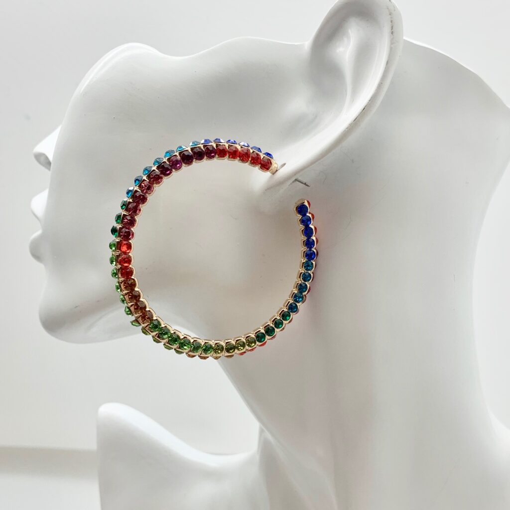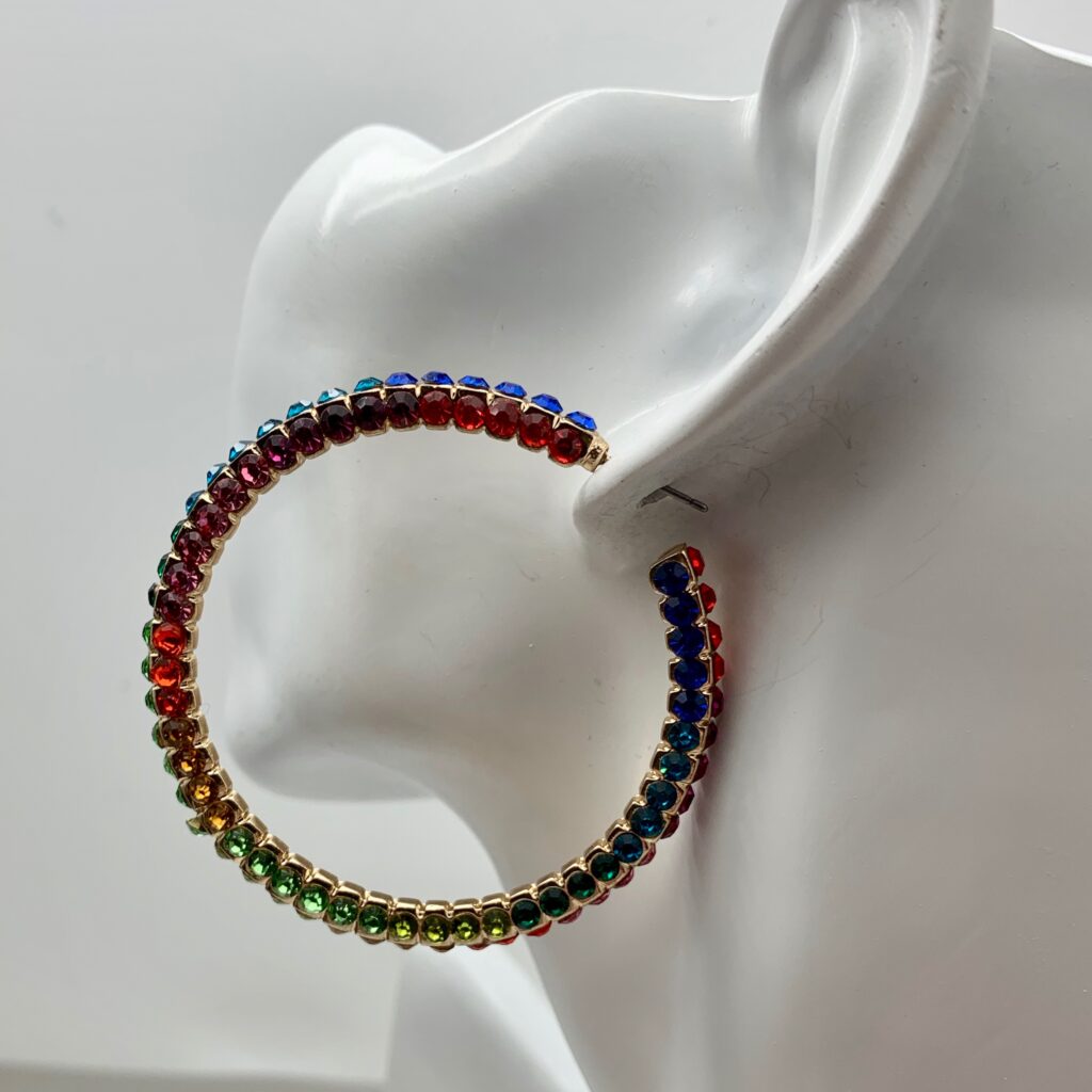 Categories:hoops, JEWELRY, EARRINGS Tags:gold-toned,hoop,Large,rainbow,Swarovski crystals